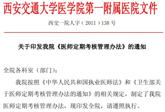 1.西安交通大學醫(yī)學院第一附屬醫(yī)院醫(yī)師定期考核管理辦法