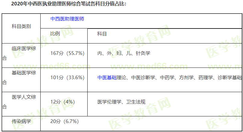 2020年中西醫(yī)結(jié)合助理醫(yī)師綜合筆試各科目分值占比及分值詳解
