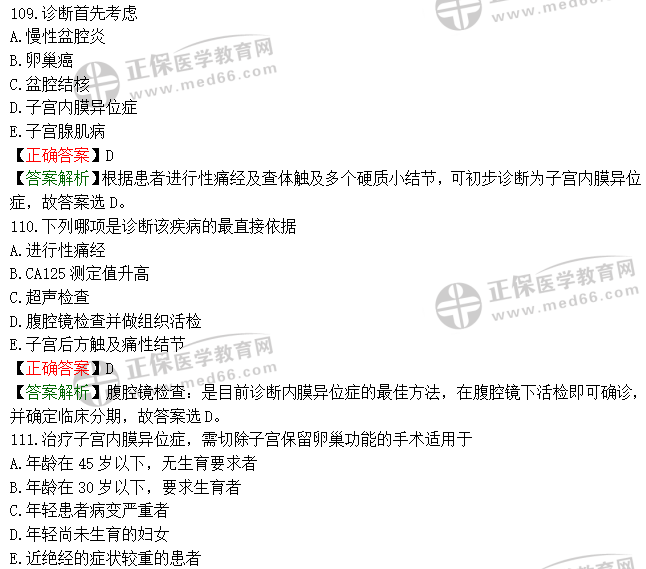 【答案解析】根據(jù)患者進(jìn)行性痛經(jīng)及查體觸及多個(gè)硬質(zhì)小結(jié)節(jié),可初步診斷為子宮內(nèi)膜異位癥,故答案選D。
