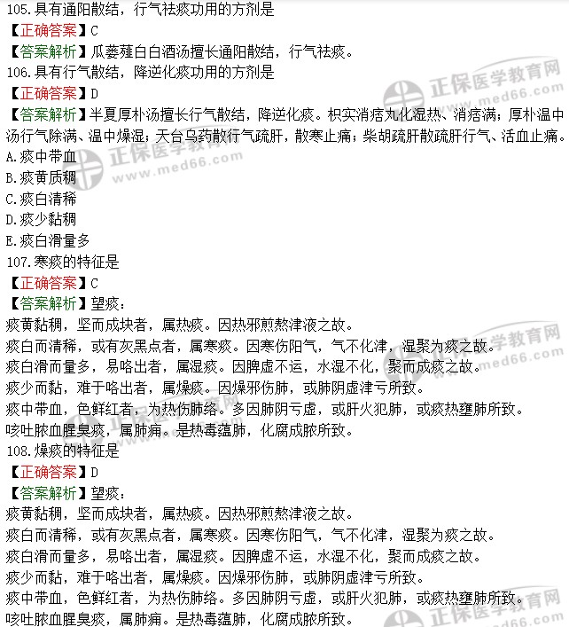 【答案解析】咳聲不揚(yáng),痰稠色黃,不易咯出,多屬熱證,多因熱邪犯肺,肺津被灼所致。咳有痰聲,痰多易咯,多屬痰濕阻肺所致。干咳無痰或少痰,多屬燥邪犯肺或陰虛肺燥所致。