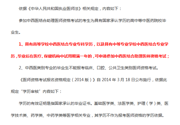 以上為“成考學歷是否符合2019【云南】中西醫(yī)結合助理醫(yī)師報名條件?”全部內容,希望可以幫到您!