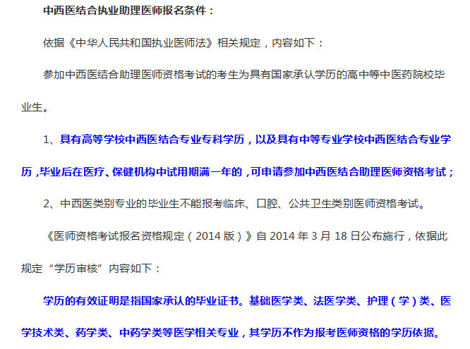 - · 中專學歷報名中西醫(yī)助理醫(yī)師需要滿足什么要求?