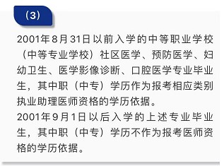 2001年以前入學的中專醫(yī)學專業(yè)學歷可參加2021年助理醫(yī)師