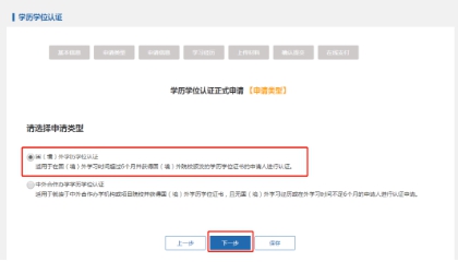 選擇第一項“囯(境)內(nèi)學歷學位認證”,點擊下一步。