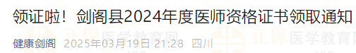 2024年四川省廣元市劍閣縣中西醫(yī)助理醫(yī)師資格證書現(xiàn)場領(lǐng)取時間