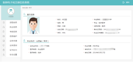 l 查看醫(yī)師本人的執(zhí)業(yè)信息。