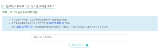 l 若您沒(méi)有收到激活碼,則可能是醫(yī)療機(jī)構(gòu)設(shè)置了為醫(yī)師自動(dòng)激活賬戶(hù),您直接刷新該頁(yè)面即可激活成功。