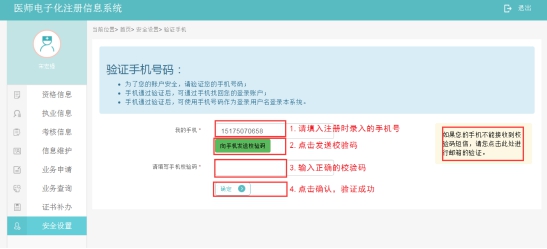 l 用戶登錄并驗(yàn)證到資格或執(zhí)業(yè)信息后,需驗(yàn)證您的手機(jī)號,如下圖所示: