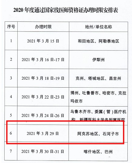 阿克蘇地區(qū)、石河子市考生可在3月29日集中辦理2020年醫(yī)師資格合格證書(shū)