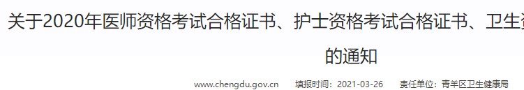 成都市青羊區(qū)2020年中西醫(yī)執(zhí)業(yè)醫(yī)師資格合格證書開始領(lǐng)取