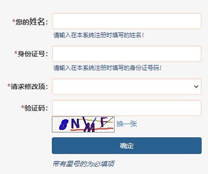 1、輸入您在醫(yī)師電子化注冊系統(tǒng)中的“姓名”和“身份證號,“請求修改項”選擇“申請修改密碼”或“申請取消綁定手機(jī)號”,正確錄入“驗證碼”后點擊“確定”,系統(tǒng)將自動完成電子化注冊信息驗證