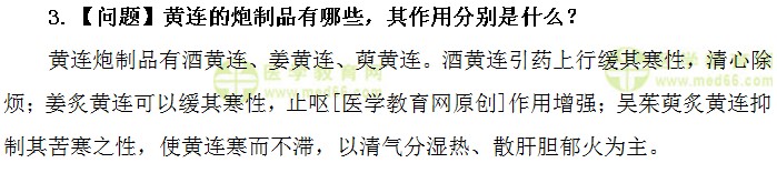 3.【問(wèn)題】黃連的炮制品有哪些,其作用分別是什么?