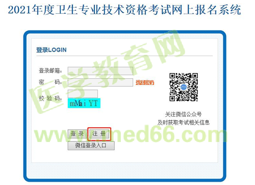 打開衛(wèi)生專業(yè)技術(shù)資格考試網(wǎng)上報名系統(tǒng)登錄頁面,點擊“注冊”,按要求完成用戶注冊。具體操作見下圖: