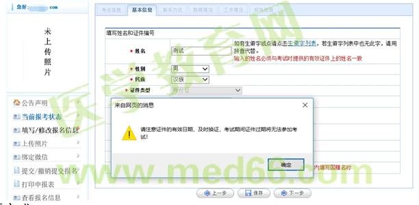 如報名時的有效證件將在考試期間失效,請考生及時更換,以免影響正常參加考試。報名系統(tǒng)中對證件有效期的提示僅用于提醒考生及時換證,不影響正常報名。見下圖: