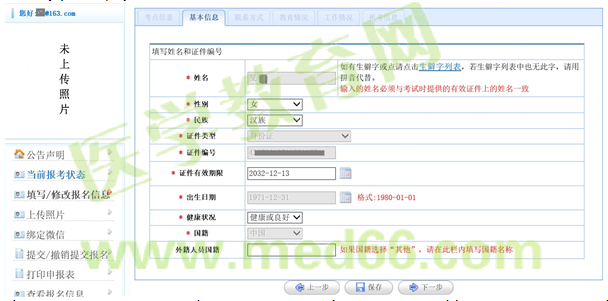 信息錄入完畢,核對無誤后,可點擊“保存”,或點擊“上傳照片"進(jìn)入上傳照片頁面。