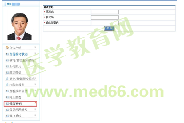 考生可使用[修改密碼]功能修改網(wǎng)報系統(tǒng)的登錄密碼。見下圖: