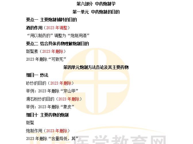 2023年初級中藥師考試教材已經(jīng)公布了,經(jīng)過醫(yī)學教育網(wǎng)專業(yè)人員校對,發(fā)現(xiàn)有很多變化的內容。具體內容如下: