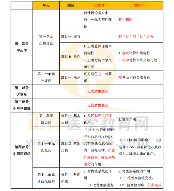 2024年中藥師考試教材公布了,經(jīng)過醫(yī)學(xué)教育網(wǎng)專業(yè)教務(wù)校對發(fā)現(xiàn)有部分變動(dòng),網(wǎng)校為大家整理相關(guān)變動(dòng)如下: