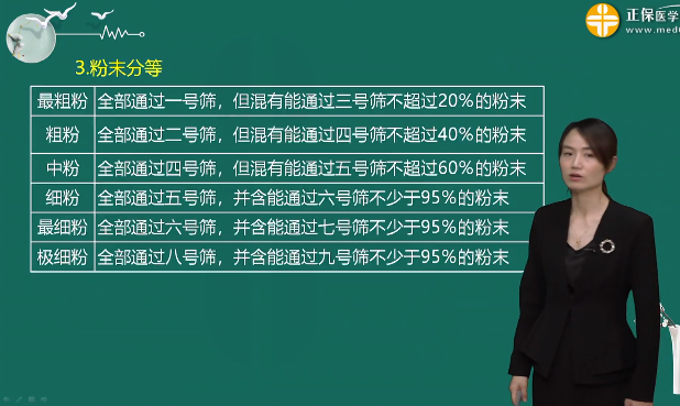 2023初級師中藥師考試考點(diǎn)2:全部通過五號篩,并含能通過六號篩不少于 95% 的粉未。