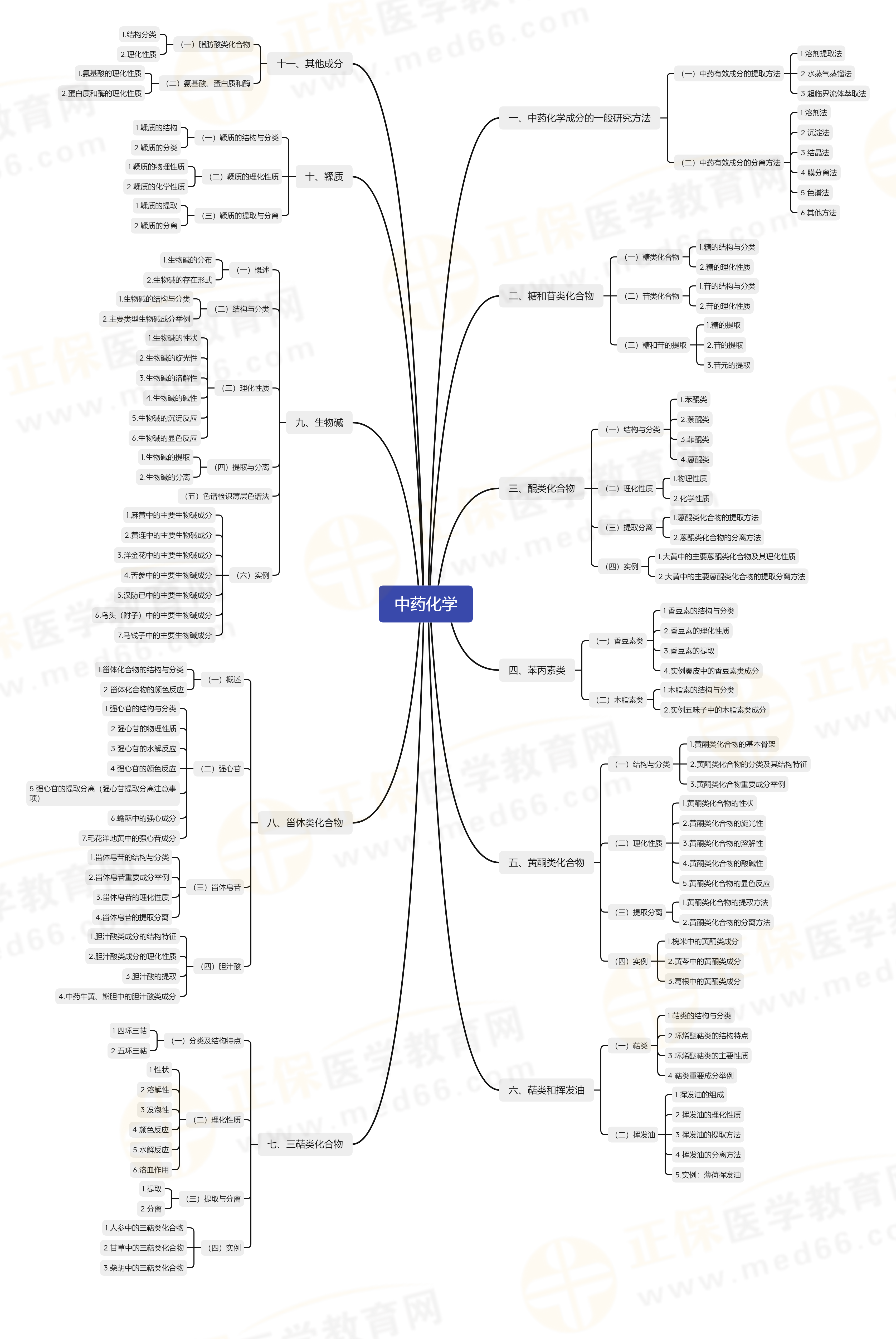 主管中藥師《基礎(chǔ)知識(shí)》考試會(huì)涉及“中藥化學(xué)”的 內(nèi)容,為了幫助各位2024年考生順利復(fù)習(xí),醫(yī)學(xué)教育網(wǎng)為大家整理“【基礎(chǔ)知識(shí)-中藥化學(xué)】知識(shí)點(diǎn)地圖”如下: