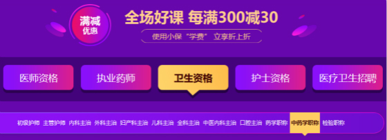 中藥學職稱課程均參與每滿300減30活動,可與小保學費疊加使用,優(yōu)惠優(yōu)惠再優(yōu)惠!