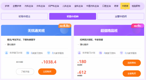 考試有遺憾?備考2020年初級中藥師考試從現在起!醫(yī)學教育網特此推出了初級中藥師考試購課優(yōu)惠,限時8.5折起,還能和優(yōu)惠券疊加使用,心動就快來吧!讓你的2020不留遺憾~