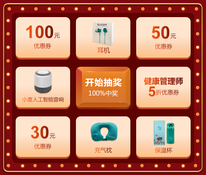 活動(dòng)期間進(jìn)入頁面抽獎(jiǎng),可抽取30元、50元、100元購課優(yōu)惠券,與8.5折扣同享更有小度人工智能音響、小米耳機(jī)等精美實(shí)物獎(jiǎng)品!