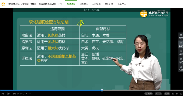 虎杖軟化程度的檢查方法是:穿刺法。課程截圖如下: