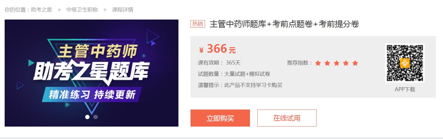 中藥學職稱考試的考生,都在為了如何更好備考而絞盡腦汁,想要多做題,查缺補漏?想多做好題,提升應試技能?中藥學職稱考試好幫手,醫(yī)學教育網(wǎng)助考之星題庫軟件來襲!