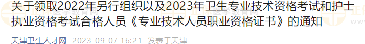 天津關(guān)于領(lǐng)取2022年另行組織以及2023年中藥學(xué)職稱考試證書的通知
