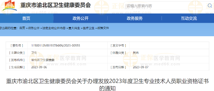 附件:重慶市渝北區(qū)衛(wèi)生健康委員會關于辦理發(fā)放2023年度衛(wèi)生專業(yè)技術人員職業(yè)資格證書的通知