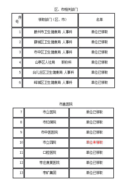 特別提醒:為方便廣大考生,衛(wèi)生初中級資格證書已下發(fā)給各個區(qū)(市)和各個市直主管單位,請考生對照相關(guān)名單到當(dāng)?shù)叵嚓P(guān)部門領(lǐng)?。I(lǐng)取地點見下面的列表)。部分市直單位考生及未明確單位所在地區(qū)的統(tǒng)一到棗莊市人事考試中心領(lǐng)取。