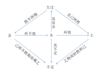 3.理解“木虛土侮”“木虛金乘”“木亢侮金”“木亢乘土”。
