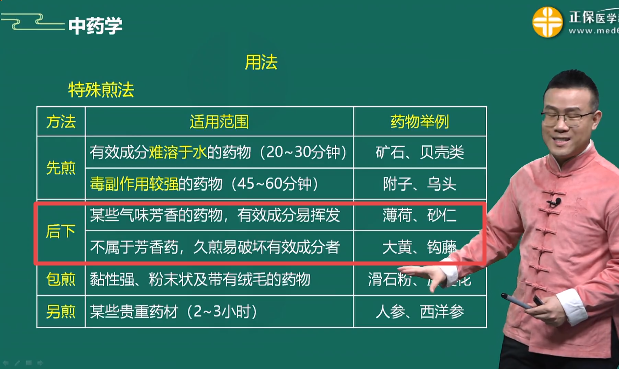 后下:主要指一些氣味芳香的藥物,久煎其有效成分易于揮發(fā)而降低藥效,