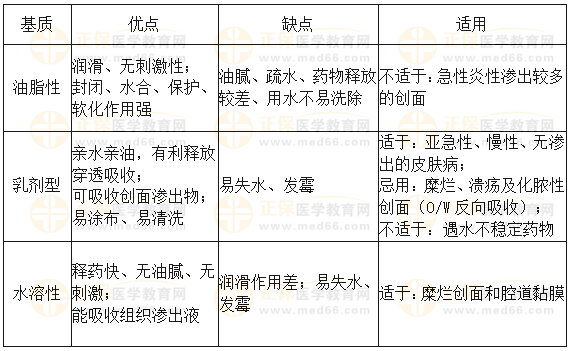 軟膏劑不同基質(zhì)的特點(diǎn)對(duì)比