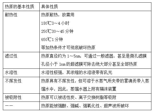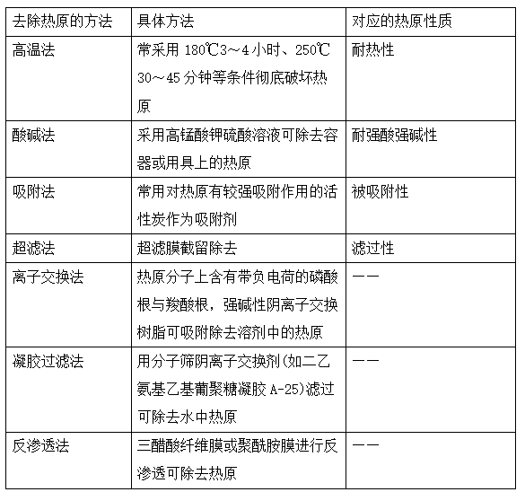 4.去除熱原的方法以及對應(yīng)的性質(zhì)