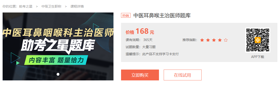 下載地址:中醫(yī)耳鼻喉主治醫(yī)師助考之星題庫下載入口>>