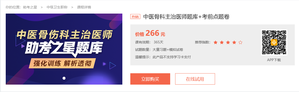 2020年中醫(yī)骨傷主治醫(yī)師模擬試題庫哪里有?參加中醫(yī)骨傷主治醫(yī)師考試的考生,都在為了如何更好備考而絞盡腦汁,想要多做題,查缺補漏?想多做好題,提升應(yīng)試技能?中醫(yī)骨傷主治醫(yī)師考試好幫手,醫(yī)學(xué)教育網(wǎng)助考之星題庫軟件來襲!
