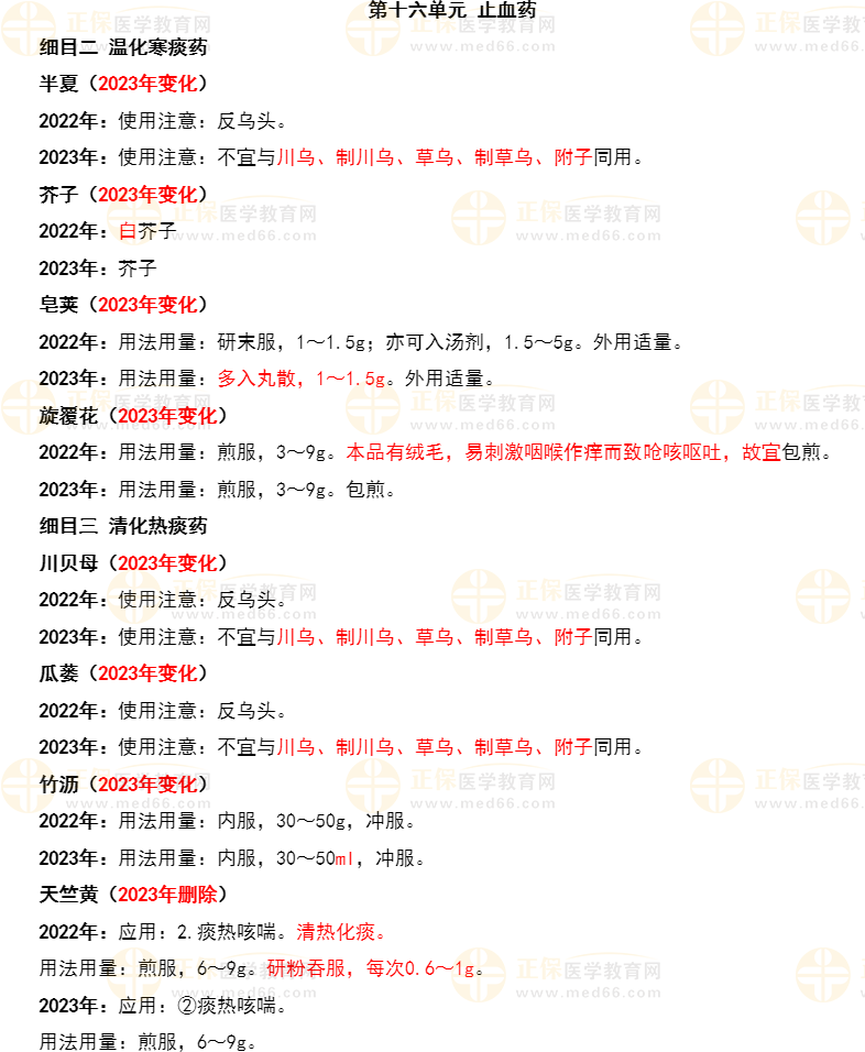 2023中醫(yī)內(nèi)科主治醫(yī)師《中藥學(xué)》變動(dòng)匯總