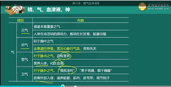 氣的分類(lèi)是中基近3年考了1次的知識(shí)點(diǎn),此部分內(nèi)容把氣的分為元?dú)?、宗氣、營(yíng)氣及衛(wèi)氣。分值適中,雖然內(nèi)容較少,但仍需要理解記憶,主要考查分布及生理功能。