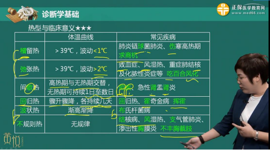 不規(guī)則熱:發(fā)熱無一定規(guī)律,可見于結(jié)核病、風(fēng)濕熱、支氣管肺炎、滲出性胸膜炎等。