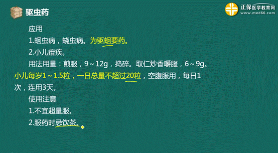 中藥的驅(qū)蟲藥是中藥學(xué)近3年的高頻考點(diǎn),此部分雖然內(nèi)容比較少,但相對(duì)考查較多,主要考查藥物功效主治及驅(qū)蟲藥的適用范圍。