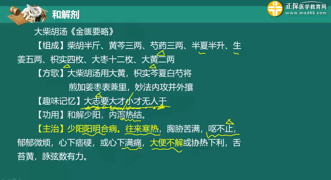 【趣味記憶】大志要大才小才無人干【功用】和解少陽,內(nèi)瀉熱結(jié)。