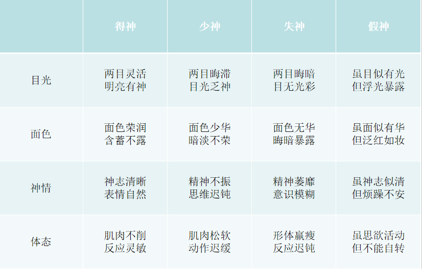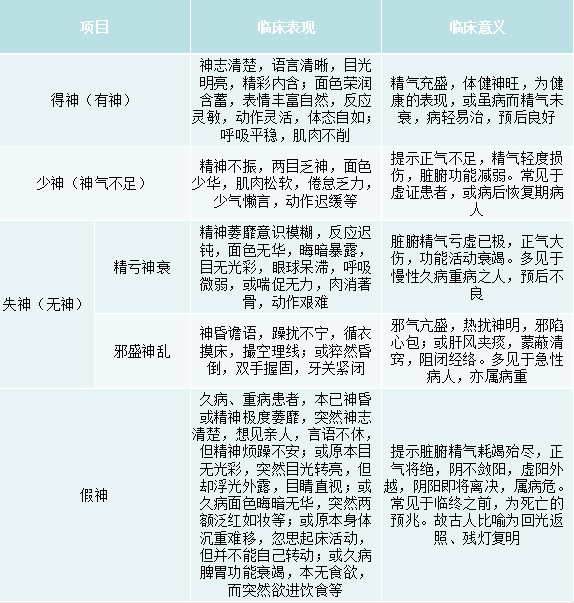 得神、少神、失神、假神的臨床表現(xiàn)及意義