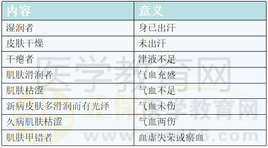 按肌膚的內(nèi)容及臨床意義:診潤燥滑澀