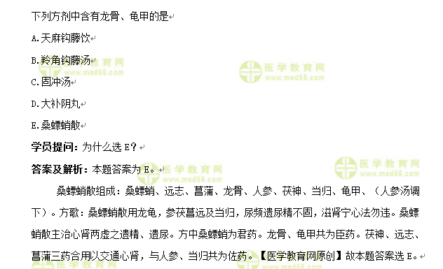 方劑學(xué)習(xí)題與解析:桑螵蛸散