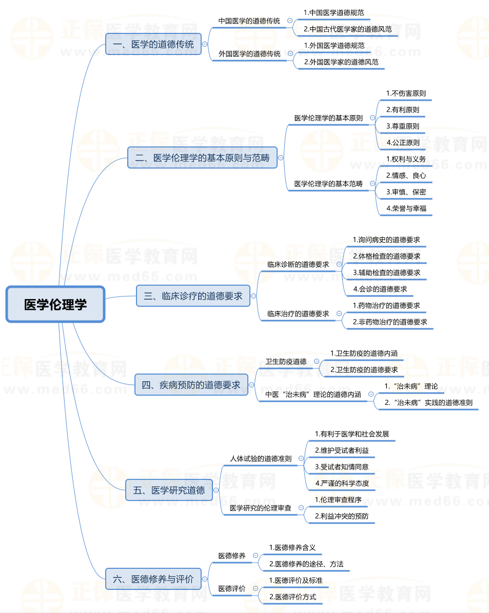 中醫(yī)內(nèi)科主治醫(yī)師考試實行全國統(tǒng)一組織、統(tǒng)一考試時間、統(tǒng)一考試大綱、統(tǒng)一考試命題、統(tǒng)一合格標準的考試制度,原則上每年進行一次。2024年中醫(yī)內(nèi)科主治醫(yī)師考試新考期已經(jīng)開始了,為了幫助各位考生理清考試知識點脈絡,更有針對性復習,醫(yī)學教育網(wǎng)為大家整理中醫(yī)內(nèi)科主治醫(yī)師《相關專業(yè)知識-醫(yī)學倫理學》知識點地圖如下: