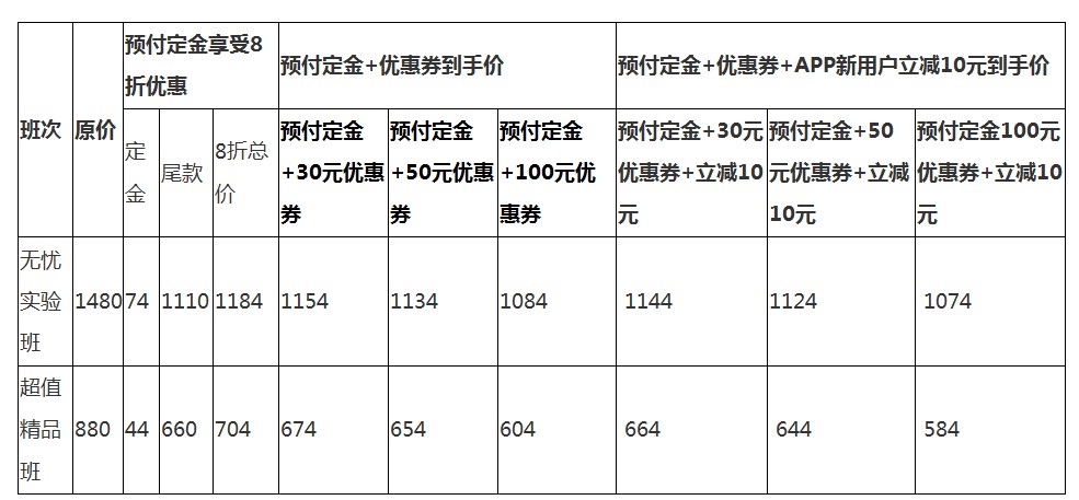 (1)預(yù)付定金=課程原價(jià)×5%;