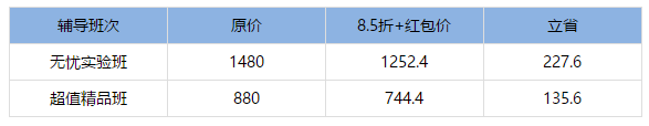 免費(fèi)領(lǐng)取80、50、30元學(xué)費(fèi)禮包,可以與其他折扣同享。80元紅包可用于高效定制班、50元學(xué)費(fèi)紅包用于無(wú)憂實(shí)驗(yàn)班、30元學(xué)費(fèi)紅包用于超值精品班。學(xué)費(fèi)禮包有效期為12月24日-1月16日(23:59:59)。