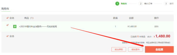 在購物車內確認已選課程,確認無誤后點擊“去結算”;